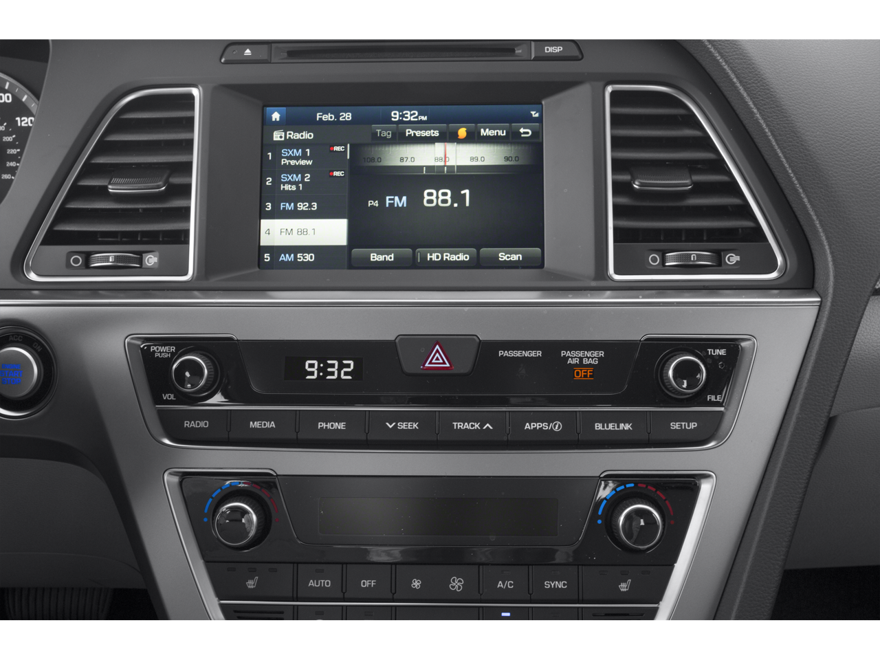 Step inside the Sonata Sport and you'll be greeted by a spacious and well-appointed interior, with premium cloth seating surfaces, a leather-wrapped steering wheel and shift knob, and a host of advanced technology features. The 8-inch color touchscreen display with navigation, SiriusXM satellite radio, and a premium audio system with 7 Dimension speakers provide an exceptional multimedia experience.