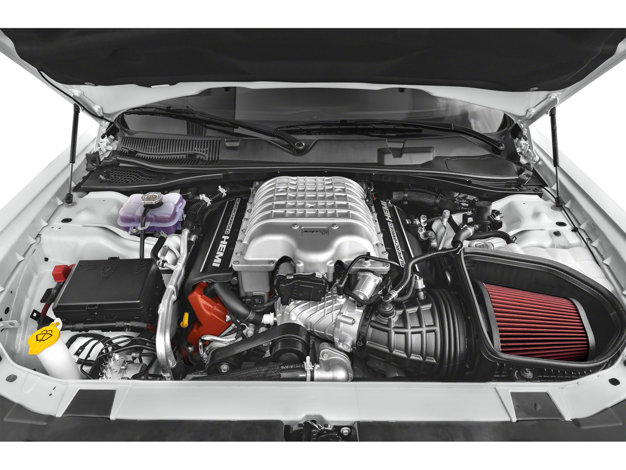Powered by a ferocious 6.2L supercharged V8 engine, the Challenger SRT Hellcat delivers an exhilarating 717 horsepower and 656 lb-ft of torque. Paired with an 8-speed automatic transmission, this high-performance powertrain provides lightning-fast acceleration and a thrilling driving experience.