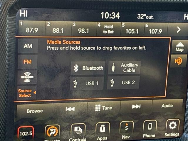 - Radio w/Seek-Scan, Clock, Speed Compensated Volume Control, Aux Audio Input Jack, Steering Wheel Controls, Voice Activation, Radio Data System and Uconnect External Memory Control