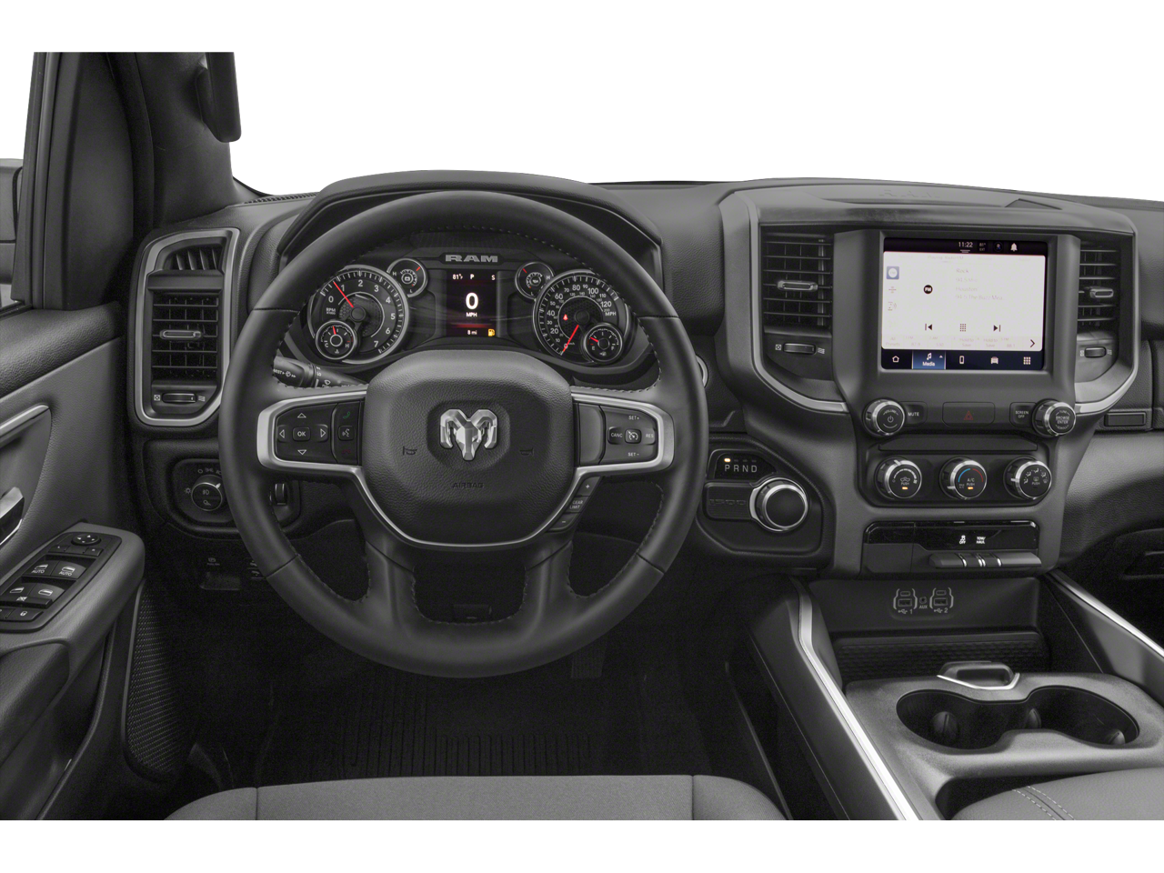 275/55R20 OWL All-Season Tires, 3.55 Axle Ratio, 7.0 In. TFT Cluster Color Display, Anti-Spin Rear Differential, Big Horn Level 2 Equipment Group, Connected Services Delete Credit, Deluxe Cloth Bucket Seats, Front 115V Auxiliary Power Outlet, Front and Rear Rubber Floor Mats, Front License Plate Bracket, Manufacturers Statement of Origin, Night Edition, ParkSense Front and Rear Park Assist System w/Stop, Quick Order Package 23Z, Remote Start System 2022 Car And Driver 10Best Cars and Trucks, 2022 Texas Auto Writers Association Full-Size Pickup Truck of Texas, 2022 US News Best Truck Brand Take command of the road in this stylish Black 2022 Ram 1500 Big Horn Quad Cab 4x4 with a 6.4 ft. bed. Powered by a robust Pentastar eTorque 3.6L V6 engine and an 8-speed automatic transmission, this truck is ready for work or play. Enjoy advanced features like Uconnect infotainment with a 5-inch touchscreen, Bluetooth® connectivity, remote start, and a rearview camera system for added convenience and safety. The Big Horn Level 2 Equipment Group brings deluxe cloth bucket seats, front and rear rubber floor mats, and a leather-trimmed steering wheel for enhanced comfort. Towing is a breeze with a Class III trailer hitch, 7-pin and 4-pin wiring, and an anti-spin rear differential. This Ram also features aluminum alloy wheels, ParkSense front and rear park assist, heated power side mirrors, power-locking tailgate, and active grille shutters. Drive with confidence thanks to advanced safety features including traction and stability control, multiple airbags, and tire pressure monitoring. This well-maintained truck is ready for its next adventure. Schedule your test drive today! Stateline Chrysler Jeep Dodge Ram is Southern Massachusetts's Premier Family-Owned New Chrysler Jeep Dodge Ram and Used Car Dealer, serving the needs of customers from Providence to Boston, Taunton to Cape Cod, all the Greater Boston and Rhode Island area, and everywhere in-between for nearly 20 years. In addition to sales, we also offer a state-of-the-art service department with all Chrysler Jeep Dodge Ram Master-Certified Technicians, an Auto center for quick in-and-out service, and of course an outstanding Parts department. Stateline Chrysler Jeep Dodge Ram is your one-stop-shop for all your automotive needs so don't hesitate; Call us now and ask to speak with one of our fully certified and customer-friendly Sales or Service Consultants. From there, you will be able to schedule a test drive, Brake job or Oil Change of any of our 11 locations. We have New and Pre-Owned vehicles on the lot!