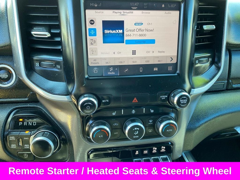 The interior of the Big Horn/Lone Star is designed with your comfort and convenience in mind. Enjoy the luxurious feel of the deluxe cloth bucket seats with power adjustability and lumbar support, as well as the intuitive Uconnect 5 infotainment system with an 8.4-inch touchscreen display. Stay connected with features like Bluetooth®, SiriusXM Satellite Radio, and a 4G LTE Wi-Fi hotspot.