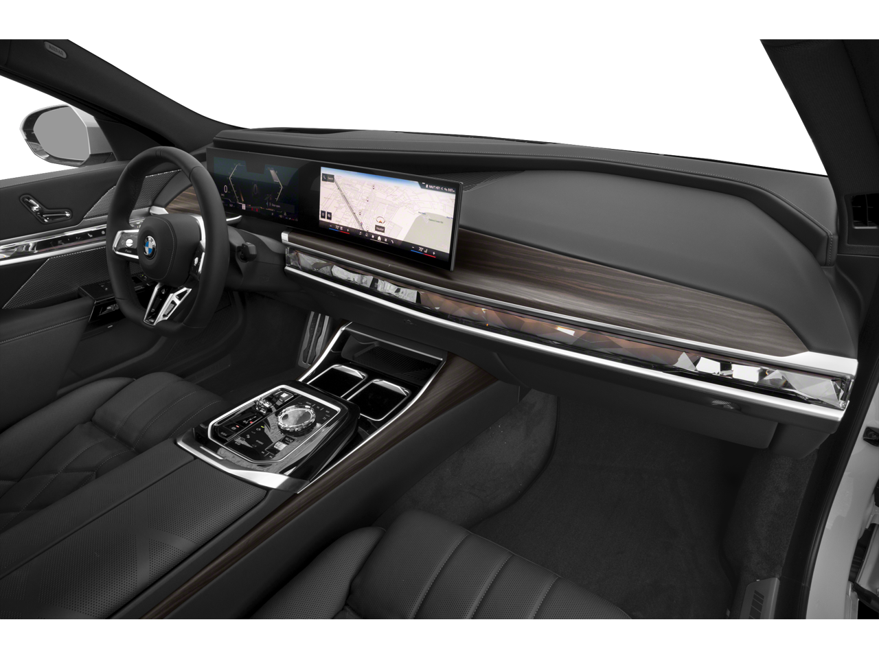 Our 760i xDrive cabin shows off a time-honored blend of excellence with heated/ventilated Merino leather front seats, an M sport steering wheel, quad-zone automatic climate control, and striking glass controls. It's an elegant environment set off by a distinctive Curved Display with a 12.3-inch driver screen and a 14.9-inch touchscreen supporting full-color navigation, comprehensive connectivity, gesture control, wireless charging, and Bowers & Wilkins surround-sound audio with precision-etched speaker grilles.