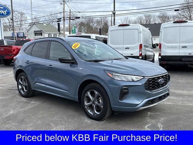 Fully Serviced!, Bluetooth®, Backup Camera, Remote Start, AWD, Alloy wheels, Brake assist, Cold Weather Package, Equipment Group 300A, Heated Front Row Seats, Heated Sideview Mirrors, Heated Steering Wheel, Panic alarm, Power Liftgate, Remote Starter System. CARFAX One-Owner. Priced below KBB Fair Purchase Price! Certified. Recent Arrival! Clean CARFAX. Vapor Blue 2024 Ford Escape ST-Line 4D Sport Utility AWD 8-Speed Automatic 1.5L EcoBoost 26/32 City/Highway MPG 24 Ford of Easton is Massachusetts's Premier Family-Owned New Ford and Used Car Dealer, serving the needs of customers from South Easton to Brockton, Bridgewater to Stoughton, all the Greater Boston area, and everywhere in-between for nearly 20 years. In addition to sales, we also offer a state-of-the-art service department with all Ford Master-Certified Technicians, a Quick Lane Tire and Auto center for quick in-and-out service, and of course an outstanding Parts department. 24 Ford of Easton is your one-stop-shop for all your automotive needs. So don't hesitate. Call us now and ask to speak with one of our fully certified and customer-friendly Sales Consultants. From there, you will be able to schedule a test drive, Brake job or Oil Change of any of our 11 locations. We have New and Pre-Owned vehicles on the lot! DEALER FINANCING REQUIRED FOR ONLINE PRICE!!!