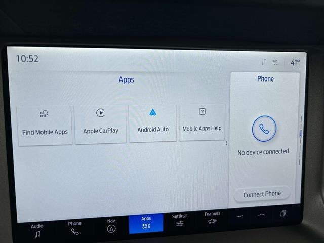 - SYNC 4 -inc: 12" LCD capacitive touchscreen w/swipe capability, wireless phone connection, cloud connected, 911 Assist, wireless Apple CarPlay and Android Auto compatibility, digital owner's manual and conversational voice command recognition