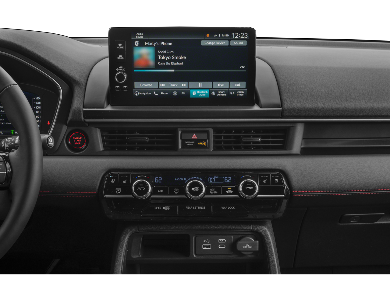 - Radio: Bose Premium Sound System -inc: 12 speakers w/subwoofer, 9" color touchscreen, Bluetooth® HandsFreeLink and streaming audio, Radio Data System (RDS), Speed-Sensitive Volume Compensation (SVC), wireless Apple CarPlay and Android Auto compatibility, Wi-Fi hotspot capability (requires AT&T data plan), SMS text message function (Your wireless carrier's rate plans apply, State or local laws may limit use of texting feature.), HD Radio, 2.5-amp USB type-A smartphone/audio interface port in front console, multi-zone audio and CabinTalk in-car PA system