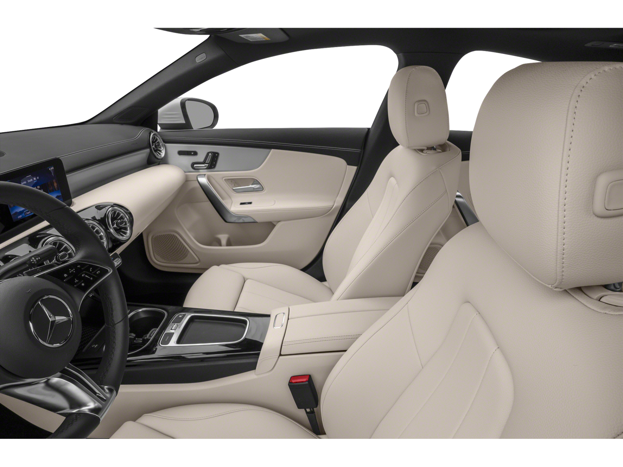 Indulge in the comfort of heated leather seats, the convenience of a rearview camera, and the expansive views afforded by the panoramic moonroof. Stay connected with the MBUX Multimedia System, featuring Apple CarPlay® and Android Auto® integration, as well as SiriusXM Satellite Radio. Enjoy the added peace of mind provided by advanced safety features, including Electronic Stability Control, Brake Assist, and a comprehensive airbag system.