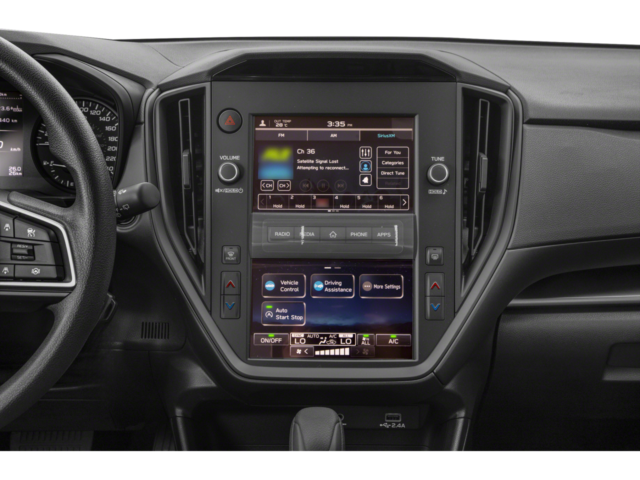 - Radio: Subaru Dual 7" Multimedia System -inc: AM/FM stereo, HD radio, multi-touch gesture high resolution display screen, voice activated controls, Bluetooth® audio streaming and hands-free phone connectivity, Bluetooth® hands-free SMS text messaging connectivity, iPod control capability, SiriusXM (4 months free trial/subscription required after), smartphone integration: wired Android Auto, wired Apple CarPlay, USB audio system update, audio system and Buletooth steering wheel control switches, 4 speakers, illuminated 3.5mm auxiliary input jack, illuminated USB A input charge port and roof mounted black antenna