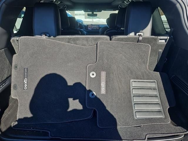Experience luxury and innovation with the 2026 INFINITI QX60 AUTOGRAPH AWD, presented in stunning Black with exclusive 2-Tone Premium Paint and just 1 mile on the odometer. This flagship SUV delivers power with a 2.0L VC-Turbo I4 engine (268hp), 9-speed automatic transmission, and intelligent full-time AWD for confident handling in all conditions. Step inside to enjoy semi-aniline leather seating for six, heated and ventilated front seats with massage function, and a panoramic sunroof. Stay connected and entertained via a 12.3-inch touchscreen, Google Built-in navigation, Apple CarPlay/Android Auto, and a premium 20-speaker Klipsch audio system. Advanced safety features include ProPILOT Assist, Predictive Forward Collision Warning, Blind Spot Intervention, 3D Around View Monitor, and 11 airbags for comprehensive protection. The QX60 AUTOGRAPH also features a power liftgate, memory settings, wireless charging, and a spacious, versatile interior with third-row seating. Complete with the Dark Cargo Package and Splash Guards for added utility and style. Backed by INFINITI's robust warranty program, this QX60 sets a new standard for luxury SUVs.Includes: Warranty available on all eligible INFINITI models up to five years / 60k miles (whichever occurs first) from the vehicle's original in-service date. [*]Warranty Includes: [*]$0 deductible167-point inspectionUp to six year / 75k mile (whichever occurs first) or six year / unlimited mile limited warrantyOne year of pre-paid maintenance (included within the first year of ownership)Up to five days of car rental reimbursement at a maximum of $50 per day